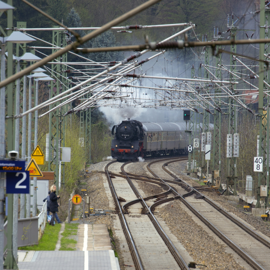 Glücklicherweise stand er noch am nächsten Tag mit seinem "Auge" an der Bahnstrecke und konnte die vorbeidampfenden Loks filmen, während ich am Hauptbahnhof stand und die vorher einfahrenden Loks filmen konnte.