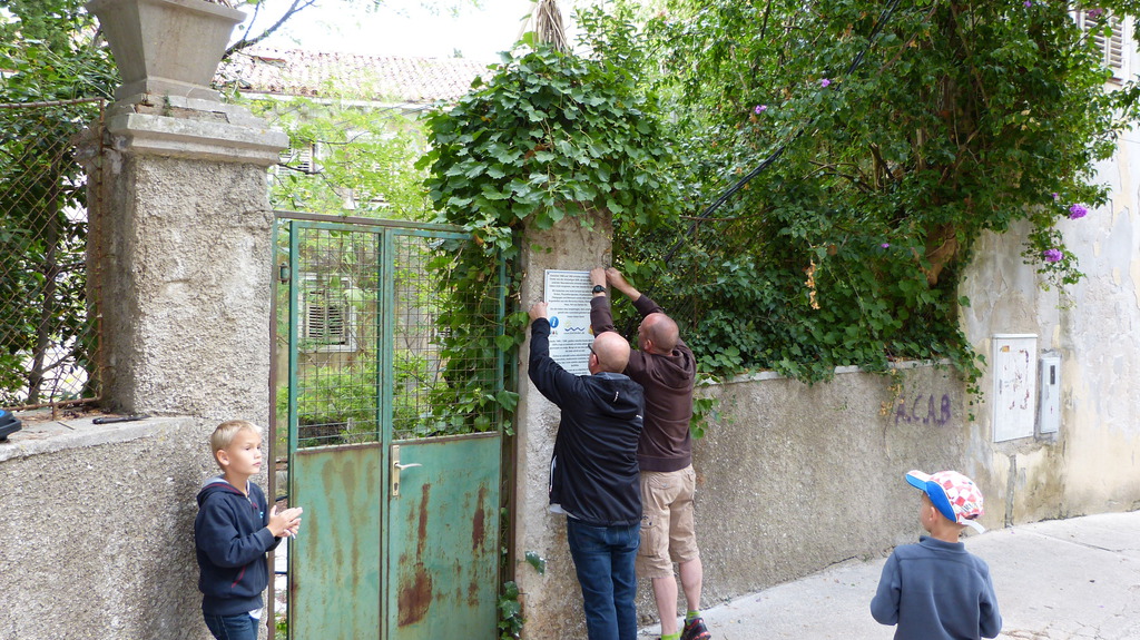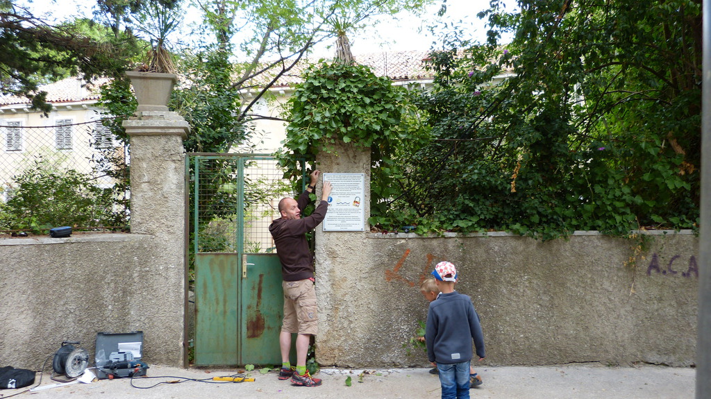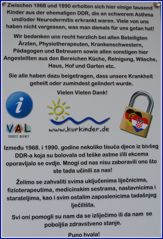 Mit Unterstützung von Lovro Hesky vom VAL Tourist Büro in Veli Losinj wurde die Tafel von Jörn Leine und Bruder Sven an die Mauer des Heimes geschraubt, als Dank kann jedes Kurkind sich mit einem